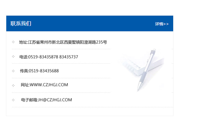地址:常州市新北區友邦商務大廈1幢16、17層  電話:0519-85101652  傳真:0519-85112595  郵編:213022  網址:www_cz-jiayue_cn.zgdjkcysc.com  郵箱:xiajifengaa@163.com